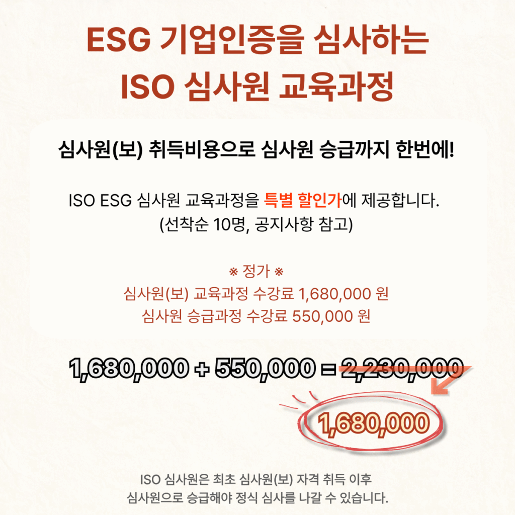 ESG심사원(보) 과정 및 심사원승급과정 수강료를